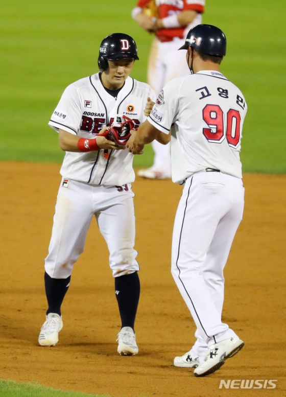 두산은 25일 잠실 구장에서 열린 KIA와 홈 경기서 10-8로 이겼다. 8-8로 맞선 8회말 2점을 뽑으며 승기를 잡았다.
