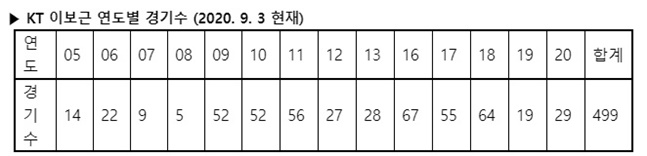 KT 위즈 이보근(34)이 500경기 출장에 단 1경기만을 남겨두고 있다.