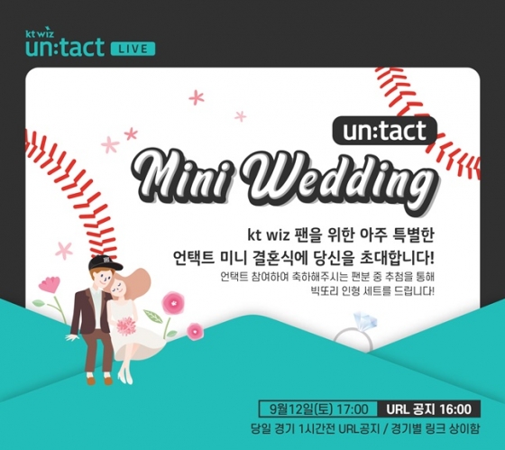 KT 위즈 관계자는 "코로나19로 인해 어려움을 겪고 있는 열성 팬의 꿈을 이뤄주기 위해 언택트 결혼식을 진행하기로 했다"라며 "가족 단위로 안전하게 즐길 수 있는 '언택트 라이브 응원전'을 통해 경기도 응원하고 지인들과 팬들의 축하 속에서 백년 가약을 맺을 예정"이라고 밝혔다.
