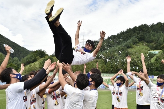 그러나 때는 분명 있었다. 올해는 이상하게도 잘 풀렸다. 8강에서 호남대를 2-0으로 꺾고, 4강에서는 사어버외대와 2-2로 비긴 뒤 승부차기까지 가는 접전 끝에 5-3으로 꺾고 결승에 올랐다. 안 감독도 예상하지 못한 일이었다. 그는 "작년에는 프로랑 경기를 해도 1~2골 차로 졌다. 올해는 한 번 지면 5~6골 차가 났다. 게임도 안됐다. 그런데 이 선수들이 우승을 했다. 사실 나도 대회를 치르면서 이상하다고 느꼈다"고 웃었다.