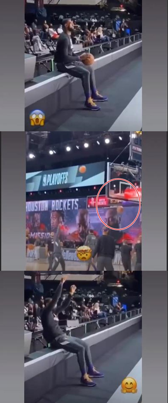 제임스는 11일(한국시간) 자신의 인스타그램을 통해 한 영상을 게재했다. 이날 열린 NBA 플레이오프 서부콘퍼런스 플레이오프 2라운드 휴스턴 로켓츠와 경기 도중 팀 훈련시간에 자신이 3점슛을 넣는 장면이었다.