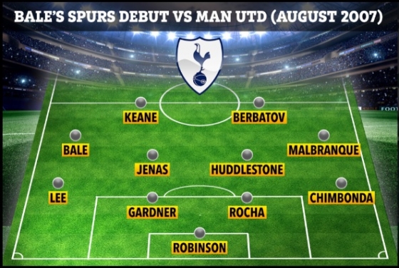 영국 매체 '더 선'은 18일(한국시간) 베일이 2007년 8월 맨체스터 유나이티드를 상대로 토트넘 데뷔전을 펼칠 당시 베스트 11을 소개했다. 베일의 친정 복귀를 기념하며 추억 여행을 한 것으로 보인다. 토트넘에서 전성기를 구가한 이영표도 당당히 이름을 올렸다.