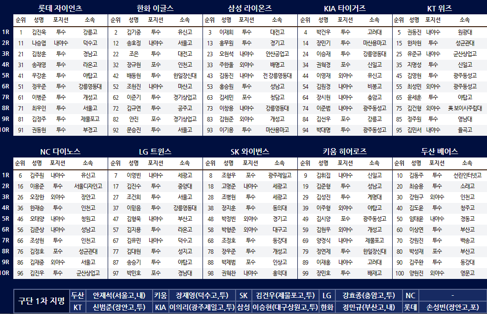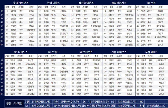 ◆ 2021 KBO 신인 드래프트 지명 현황 (각 팀 별 1라운드부터 하위 라운드 순)