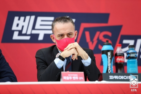 우리가 가려는 방향은 다 알 것이다. 현 상황만 놓고 보면 전 세계 국가대표팀이 어려움을 겪고 있다. 코로나19로 인해 규정이 수시로 바뀌고, 많은 국가가 선수 차출에 어려움을 겪고 있다. 우리가 할 수 있는 건 불확실한 상황에서도 대표팀을 잘 운영하도록 하는 것이다. 11월 A매치도 어떻게 될 지 모른다. 그 뒤의 소집은 내년 3월 월드컵 2차예선이다. 그러나 그때까지 앞을 내다볼 수도 없다. 지금은 10월 2경기와 11월의 미정이다. 그리고 내년 3월 경기를 준비해야 한다. 난 지난해 동아시안컵을 준비하면서 대다수의 해외파 선수를 소집하지 못했다. 유일하게 비아시아권 소속이 황인범이었다. 그런 상황에서도 대표팀을 준비했다. 이번에는 중국, 일본리그 소속 선수들이 못 왔지만 같은 마음으로 준비하겠다.