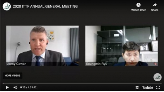 대한탁구협회는 "유승민 회장과 조용순 전무가 지난 28일 온라인 방식으로 개최된 국제탁구연맹(ITTF) '2020 ITTF Annual General Meeting (이하 AGM)'에 참석했다"고 전했다.