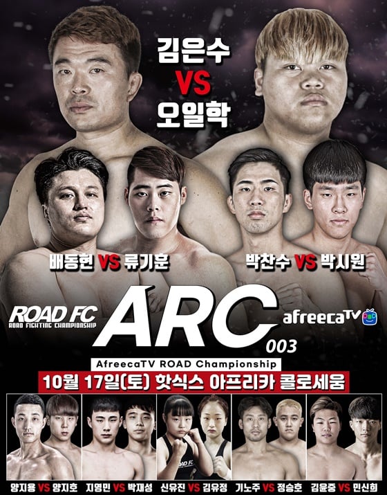 로드 FC는 "아프리카TV와 함께 오는 17일 잠실 롯데월드 핫식스 아프리카 콜로세움에서 ARC 003을 개최한다"고 전했다.