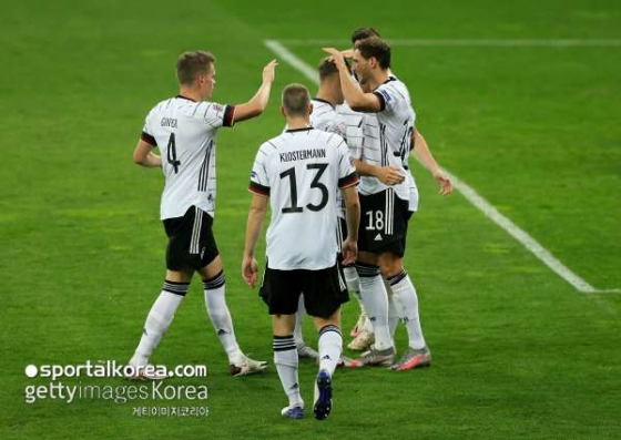 이에 맞서는 원정팀 독일은 노이어(GK), 쥘레, 뤼디거, 긴터, 클로스터만, 할슈텐베르크, 키미히, 크로스, 고레츠카, 그나브리, 드락슬러를 선발로 내세웠다.