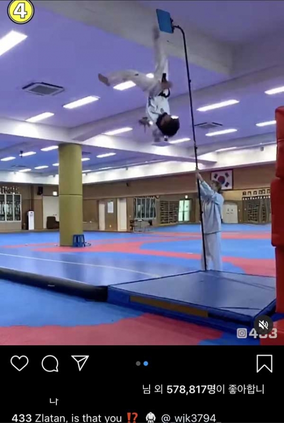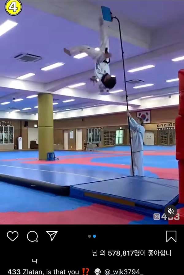 소셜 미디어를 기반으로 하는 축구 플랫폼 ‘433’은 11일(한국시간) 화려한 회전과 함께 발차기를 시도하는 태권도 선수의 영상을 게재했다. 그러면서 “이거 이브라히모비치 너야?”라고 덧붙였다.