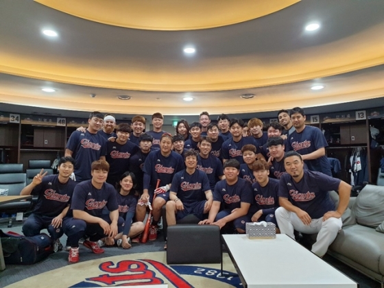 때는 7월말. 한창 롯데가 8위까지 떨어지는 등 힘든 시기를 보낼 때였다. 이때 허문회 감독은 선수들과 추억 만들기를 원했다. 그래서 생각한 것이 단체사진을 찍는 것이었다. 허 감독은 선수단을 모두 한 자리에 모이게 했고, 라커룸에서 즉석 단체사진을 찍었다.