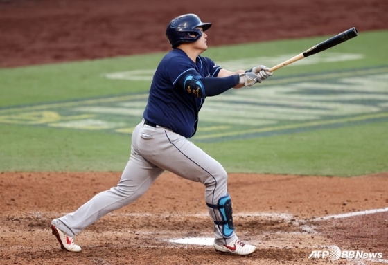 8회초 동점 솔로포를 터뜨린 탬파베이 최지만. /AFPBBNews=뉴스1
