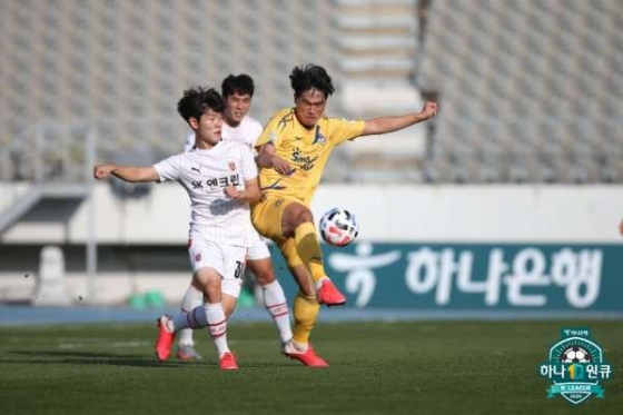 양 팀은 전반 시작과 동시에 치열한 공방전을 펼쳤다. 충남아산은 짧은 패스를 주고받으며 제주의 빈 공간을 공략했다. 전반 20분 김민석이 시도한 슈팅이 굴절되며 유연수 골키퍼 품에 안겼다. 26분엔 김재봉의 슈팅이 충남아산 골문을 위협했지만 높이 떴다. 충남아산은 빠른 템포로 제주 뒷공간을 노렸다. 하지만 마지막 마무리가 부족했다.