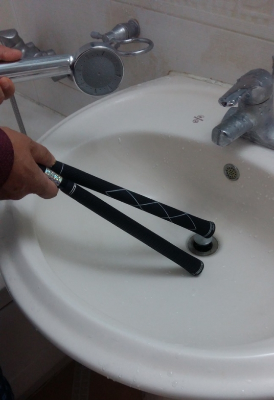 이걸 씻지 않고 보관하면 겨우내 3, 4개월 동안 그립이 삭게 됩니다. 씻지 않더라도 이듬해 봄에 못쓸 정도로 삭진 않지만 세척 후 보관한다면 새 시즌 때 지난해와 같은 감(感)으로 스윙을 할 수 있습니다.