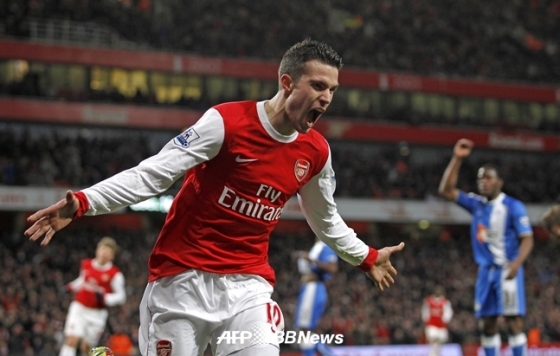 2004년 페예노르트에서 아스널로 이적한 반 페르시는 아르센 벵거(71) 감독의 신임을 받아 2012시즌까지 활약했다. 특히 2006~07시즌에는 11골을 넣어 처음으로 두 자릿수 득점에 성공했다. 8시즌 동안 리그 194경기 96골 18도움을 올렸다. 하지만 부상이 발목을 잡았다.