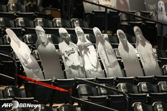 지난 8월 16일 니그로리그 100주년 기념행사 때 관중석에 배치된 흑인 선수들 모형. /AFPBBNews=뉴스1