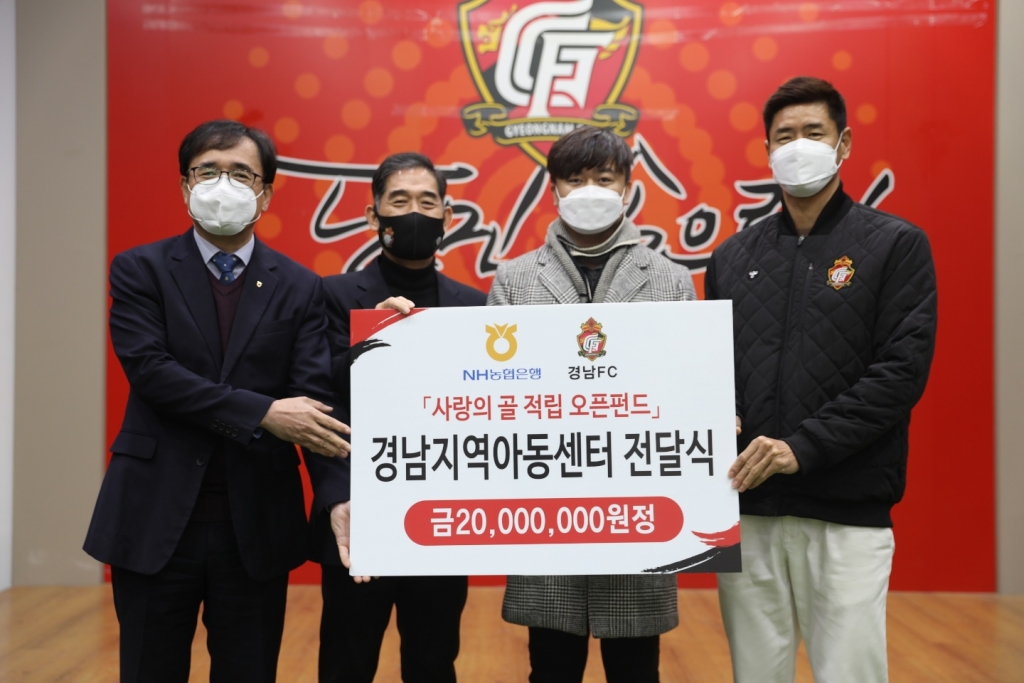 경남FC는 지난 2월 NH농협은행 경남본부와 홈경기 1골당 100만 원씩 기금을 적립하는 「사랑의 골 적립 오픈펀드」 협약을 진행했다. 올 시즌 홈 경기에서 총 20골을 기록하며 NH농협은행에서 2,000만 원 기금을 기부하였다.