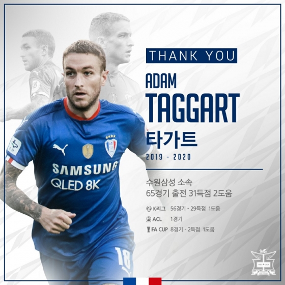 현재 호주에 머물고 있는 타가트는 수원 팬들에게 보낸 고별 인사 영상을 직접 찍어 보내왔다. 그는 “좋을 때나 나쁠 때나 항상 지지해준 수원 팬들을 절대 잊지 못할 것 같다”며 “앞으로는 여러분과 같은 마음으로 수원을 응원하겠다”고 전했다.
