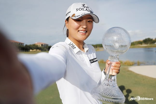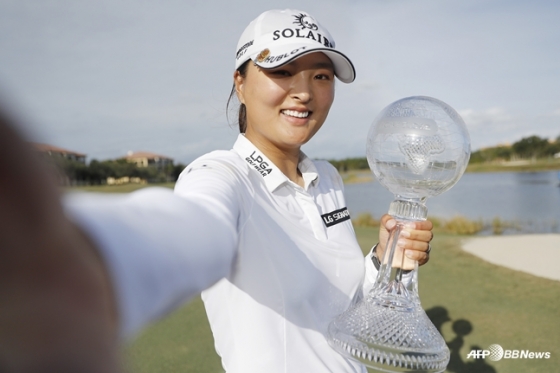 고진영은 지난 21일 미국 플로리다주에서 열린 CME그룹투어챔피언십(총상금 300만 달러)에서 최종합계 18언더파 270타로 우승 트로피를 차지했다. 통산 LPGA 투어 7승을 달성했다.