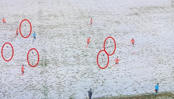 경기장에 함박눈이 쏟아지면서 녹색 그라운드는 아예 하얀색으로 변했다. 문제는 원정 팀 시바스스포르 선수들의 유니폼이었다. 눈과 같은 색인 새하얀 원정 상,하의를 입은 것이다. 심지어 양말까지 하얀색이었다.