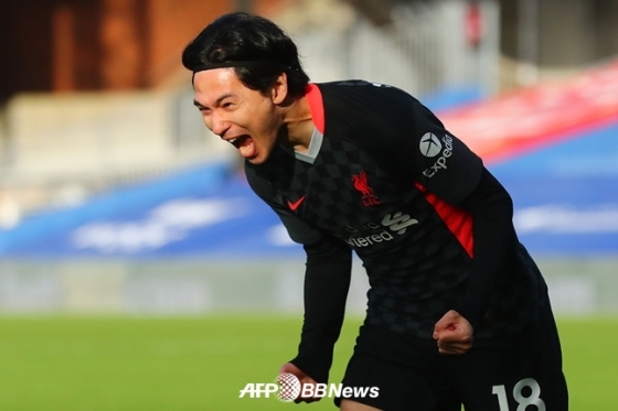 미나미노가 지난해 12월 20일 크리스탈 팰리스전에서 EPL 데뷔골을 넣고 기뻐하고 있다./AFPBBNews=뉴스1
