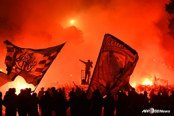 지난 2019년 11월 홍염을 피운 마르세유 팬들. /AFPBBNews=뉴스1