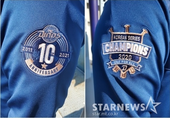 NC는 2011년 3월 31일 창단했다. 올해가 딱 10주년이 된다. 이를 기념해 점퍼 등 트레이닝복 왼팔에 기념 패치를 부착했다. 오른팔에는 2020 한국시리즈 우승 기념 패치를 달았다. 'ONE FOR ALL'이라는 문구도 추가했다.