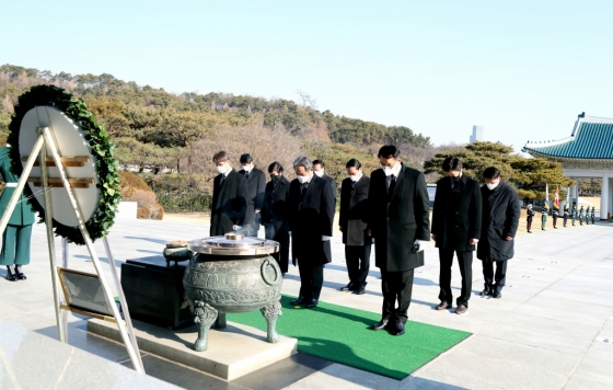 현충원 참배를 하고 있는 이기흥(왼쪽에서 네 번째) 대한체육회장. /사진=대한체육회 제공