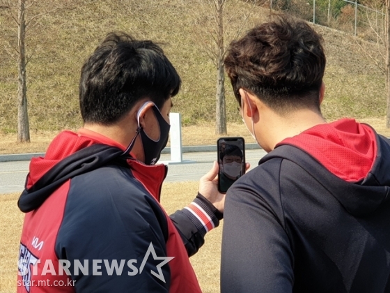 함평에서 훈련하고 있는 KIA 타이거즈 선수들이 출국 직전의 양현종(33·텍사스)와 영상통화를 하며 작별의 아쉬움을 달랬다.