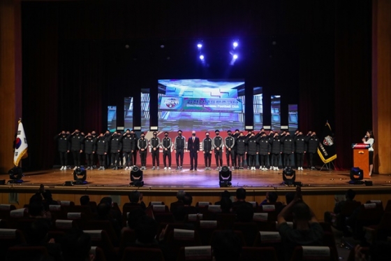 김천상무(구단주 김충섭)는 23일 오후 2시 30분 김천문화예술회관 대공연장에서 ‘김천상무프로축구단 출범식’을 열었다. 출범식은 정부방역지침을 준수해 이뤄졌으며 참석자들은 입장 시 발열체크, 손 소독 절차를 철저히 지켰다.