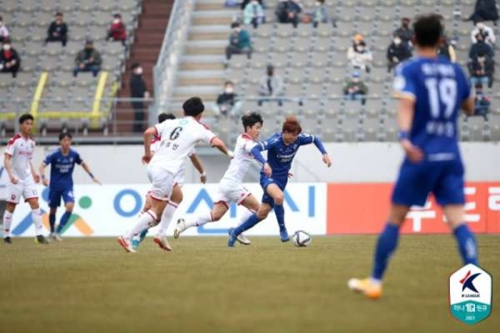 전반 초반부터 치열한 몸싸움이 이어졌다. 충남아산은 강한 전방 압박으로 부천의 공격 전개를 방해했다. 양 팀은 좀처럼 서로의 중원을 뚫지 못했다. 측면을 공략하려 했지만 계속 차단당했다. 전반 20분 충남아산이 선제골 기회를 얻었다. 박민서의 슈팅을 전종혁 골키퍼가 막아내는 과정에서 쇄도하던 김찬이 파울을 얻어냈다. 주심은 곧바로 PK를 선언했다. 하지만 키커로 나선 박세직이 실축하며 아쉬움을 삼켰다.