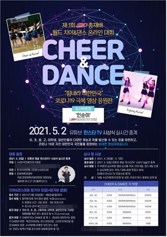 사단법인 한국연예인야구협회(총재 정천식·이하 SBO)는 ‘힘내라 대한민국!’을 주제로 ‘제1회 SBO 총재배 세계 치어·댄스 온라인 대회(WORLD CHEER&DANCE On-Line Competition)’를 개최한다고 15일 밝혔다.