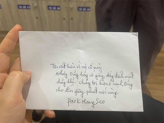 이뿐만이 아니었다. 도훙중이 병원으로 실려가자 곧장 뒤따라 병원으로 향한 박 감독은, 도훙중이 수술을 마친 다음날 그의 병실을 직접 찾아가 그를 위로했다. 또 베트남어로 직접 “용기를 잃지 말고 힘내라. 우리가 항상 옆에 있겠다”는 등의 내용이 담긴 손편지도 건넸다.