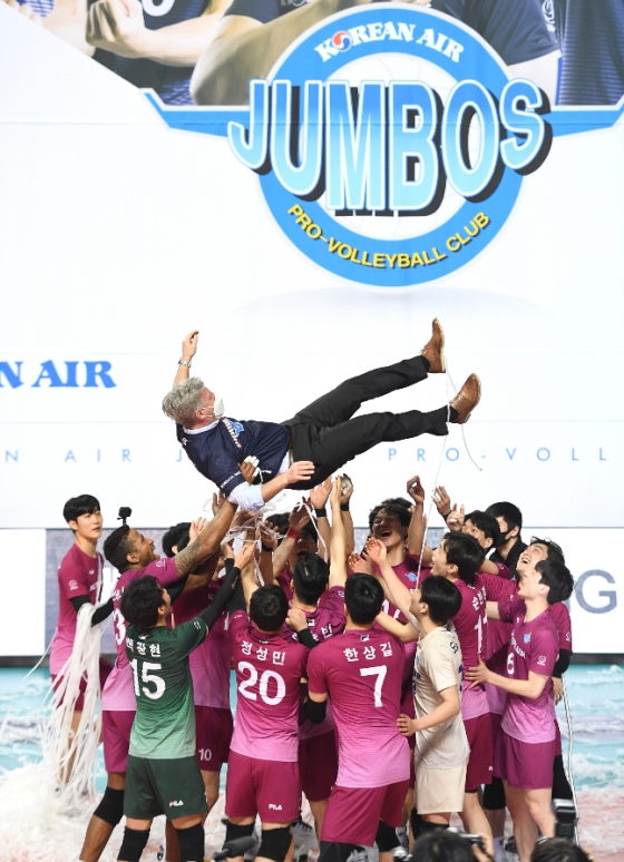 하지만 산틸리 감독은 결국 대한항공을 1위로 이끌었다. 그는 "선수들에게 감사하다. 내 의도를 잘 인지하고 따라왔다. 선수들이 많이 성장했다는 점이 만족스럽다. 모든 구성원들에게 감사하며 경기를 거듭하며 발전했다. 목표를 이루어 행복하다"고 기뻐했다.