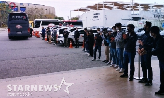 창원으로 개막전을 치르러 가는 선수단 버스를 향해 대표이사를 비롯한 LG 트윈스 프런트 전 직원이 손을 흔들며 배웅했다. 올 시즌 LG 트윈스의 각오와 선수단을 향한 프런트의 정을 느낄 수 있는 장면이었다.