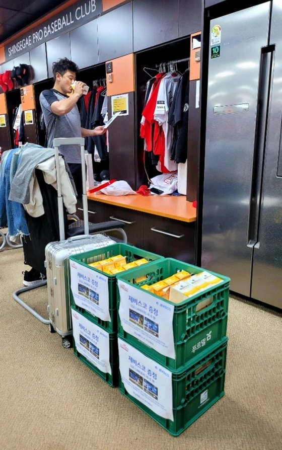 지난 8일 제비스코 담당임원이 직접 인천 SSG랜더스필드에 찾아왔다. 그리고 최주환에게 쓴 감사의 손편지와 제비표 바나나우유 4박스, 제비표 콜라보 티셔츠를 영업팀에게 전달했고, 이후 최주환이 받았다. 이 중 제비표 바나나우유에도 재미있는 사연이 있었다. 제비스코와 이마트24와의 콜라보 상품으로 지난 2일부터 이마트24에서 단독 출시한 상품이다. SSG 계열사인 이마트24와 함께 한 상품이라 더욱 의미가 있었다는 후문이다.