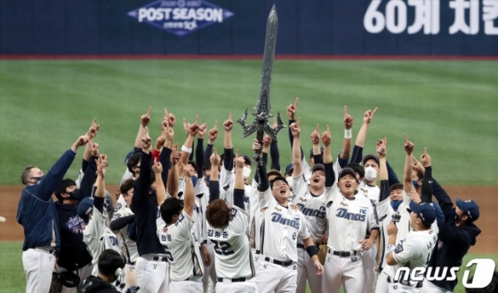 지난해 한국시리즈 우승 후 환호하는 NC 선수들. /사진=뉴스1