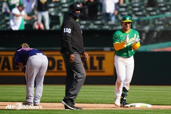 미네소타 트윈스는 이날 미국 오클랜드 콜리세움에서 열린 2021 메이저리그 오클랜드 어슬레틱스와 경기서 10회 연장 승부치기 끝에 12-13으로 졌다.