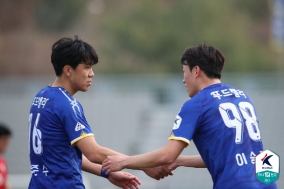 지난 FC안양전에서 충남아산은 후반전 유준수를 최전방으로 올려 만회골을 터뜨렸다. 유준수가 최전방부터 최후방까지 모두 뛸 수 있는 멀티 플레이어인만큼 박동혁 감독은 그 부분을 적극적으로 활용했다. 가능성이 보이자 박동혁 감독은 김천전에서 아예 유준수를 시작부터 최전방으로 기용한 것이다.