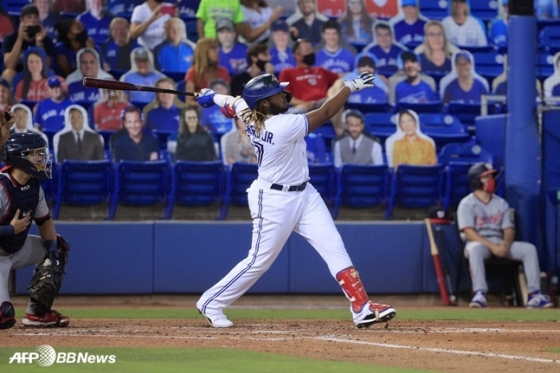 게레로 주니어는 28일(한국시간) 미국 플로리다 주 더니든의 TD볼파크에서 열린 2021 메이저리그 정규시즌 워싱턴 내셔널스전에 3번 타자 겸 1루수로 선발 출전해 3홈런 7타점을 폭발시켰다.