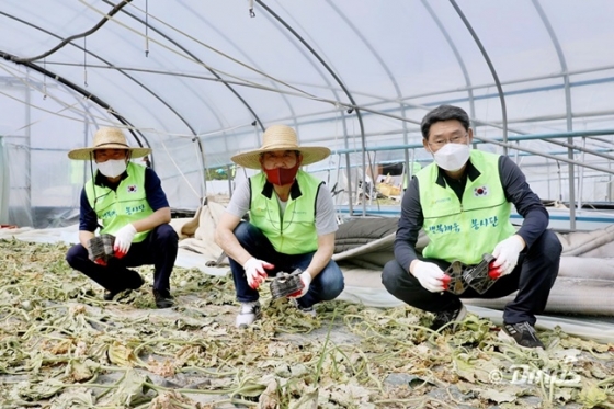 이날 세 단체 임직원과 랠리 다이노스(NC 응원단), 루미너스(경남FC 응원단)는 코로나19 장기화로 인력 수급에 어려움을 겪고 있는 농촌 '의령군 구소마을'을 찾았다. 방역수칙을 준수한 가운데 비닐하우스를 철거하고 마을회관 주변 환경을 정비하는 등 도움의 손길을 나눴다.