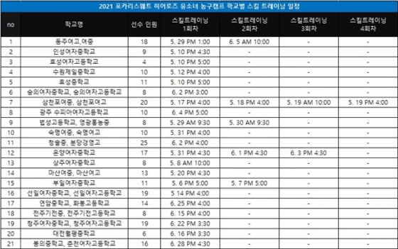 이번 캠프는 전국 19개 중학교, 16개 고등학교 등 총 35개교 283명의 여자농구 유망주들이 참가하며, 신종 코로나바이러스 감염증 확산 방지를 위해 직접 학교에 방문해 학교별 맞춤 트레이닝을 실시한다.