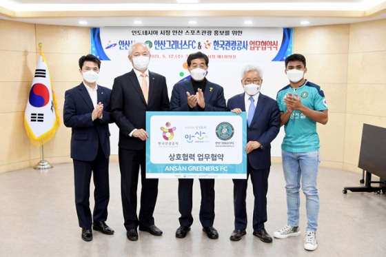 [스포탈코리아] 조용운 기자= K리그2 안산 그리너스와 안산시, 한국관광공사가 12일(수) 오후 3시 안산시청에서 한국 및 인도네시아 내 인기스포츠인 축구를 통한 한국관광 홍보를 위한 업무협약을 체결했다.