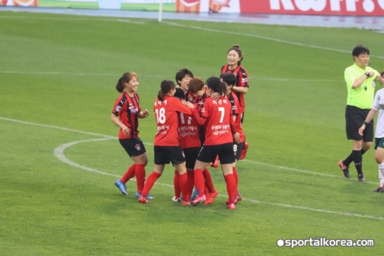 [스포탈코리아=수원] 이윤성 인턴기자= 이네스가 멀티골을 터트린 경주한수원이 WK리그 선두를 이어갔다.
