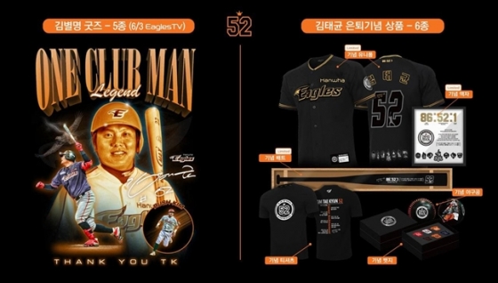 이와 함께 김태균의 현역 시절 별명을 활용해 만든 '김별명 굿즈' 5종은 내달 3일 이글스TV에서 김태균과 함께 라이브 커머스를통해 출시한다.