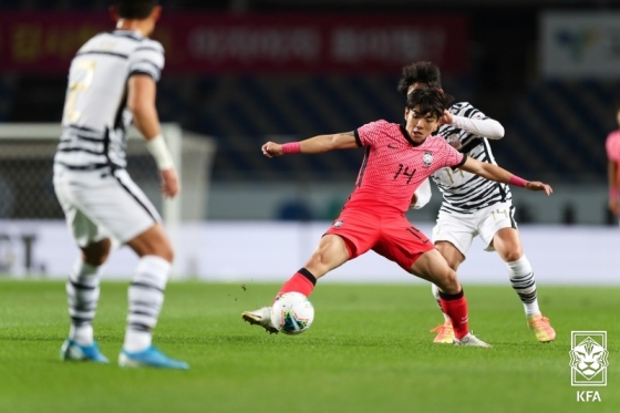 (울산현대 소속인 이동경과 원두재는 A대표팀 일정을 마친 뒤 곧바로 올림픽 대표팀에 합류해 15일 가나와의 2차전에 교체로 나섰다)