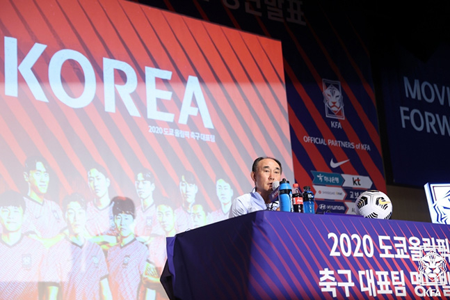 김학범(61) 올림픽축구대표팀 감독은 30일 오후 2시30분 서울 광화문 KT스퀘어에서 기자회견을 열고 도쿄올림픽에 나설 18명의 최종명단을 발표했다. 당초 이날 발표될 예정이었던 4명의 예비명단은 공개되지 않았다.