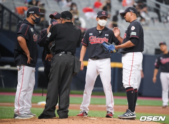 홍원기 감독은 "공에서 끈적한 것이 나왔기 때문에 확인 차원에서 (심판들에게)요청을 했던 것 뿐이다. (프랑코가 던졌던)공에서 그런 부분이 발견되고 특정 동작을 반복했다. 문제 제기는 내가 할 일이다"라고 강조했다.