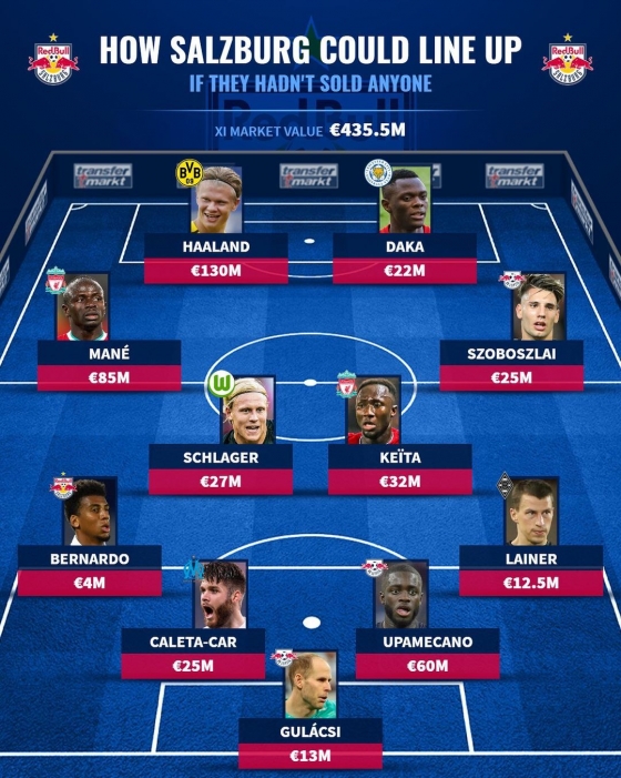 유럽 축구 통계 매체 ‘트랜스퍼마크트’는 5일(한국시간) 잘츠부르크 전현직 선수들로 베스트 11을 꾸려봤다.
