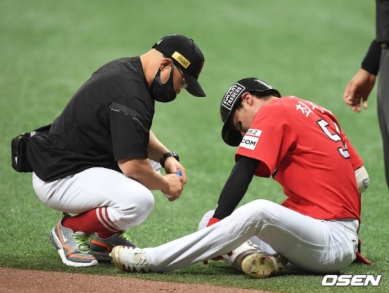 SSG 랜더스의 돌격 대장이 사구로 쓰러졌다. 위험한 부위라 SSG가 최지훈(24)의 부상에 촉각을 곤두세우고 있다.