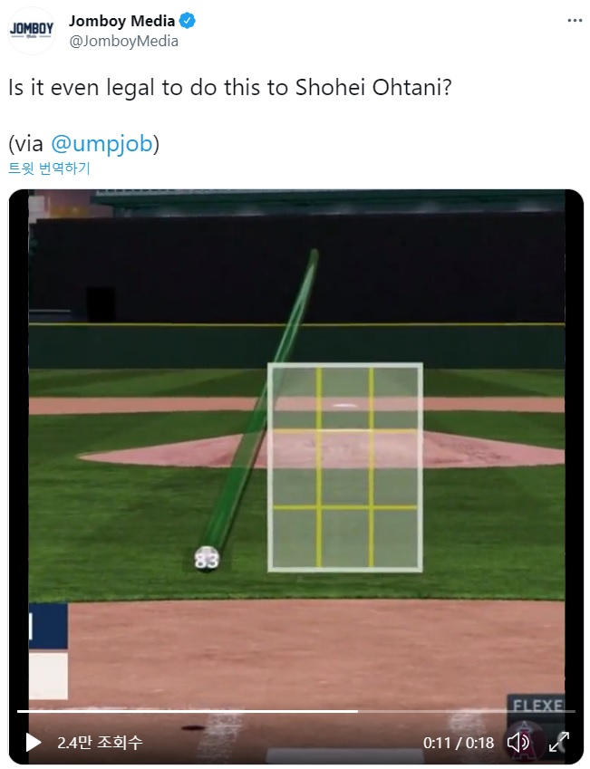 하지만 6회 초 1사 상황에서 나온 오타니의 삼진콜은 논란의 대상이 됐다. 전 타석에서 볼넷 - 좌익수 뜬 공으로 물러난 오타니는 크리스 플렉센(27)의 공을 걷어내며 2스트라이크 2볼을 만들었다.