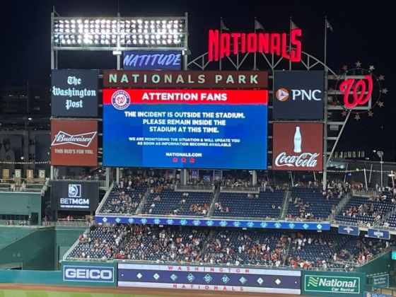 MLB.COM에서 워싱턴을 담당하고 있는 제시카 카메라토 기자는 자신의 트위터를 통해 "내셔널스 파크 밖에서 사건이 발생했다. 홈팬들은 경기장 안에 머물러야 한다"면서 홈구장 소식을 전달했다.